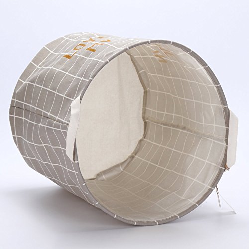 -. Feature : NATURAL MATERIAL: 100% Natural Linen and Cotton Fabric + PE Coating / ORGANIZE EVERYTHING: The hamper provides attractive, lightweight solution to many storage needs such as Clothing Storage (especially for Underwear, Skirt, T-shirt, Jacket, Pants, Blue Jeans, etc.), Toy Storage, Baby Product's Storage, Pet Product's Storage or just to store your magazines and newspapers. / EASY TO USE: No assembly and tools required. To be a competent helper, it can not only help you organize and store the sundries to save room space, but also can be folded when in no use (little space occupation). / EXTENSIVE USE: Product's dimensions are 50cm (H) x 40cm (Dia.)/19.7" (H) x 15.7" (Dia.). Great for using in kid's room, bedroom, studyroom, rest room, kitchen, office, etc.(Manual measurement may slightly differ with objects, please in kind prevail.) / STYLISH LOOK: With modern and stylish design, our storage bins combine both of the ornamental and practical forms. They are not only household life good helpers but also charming decorations.