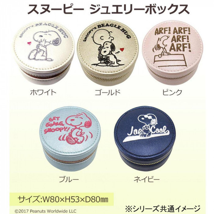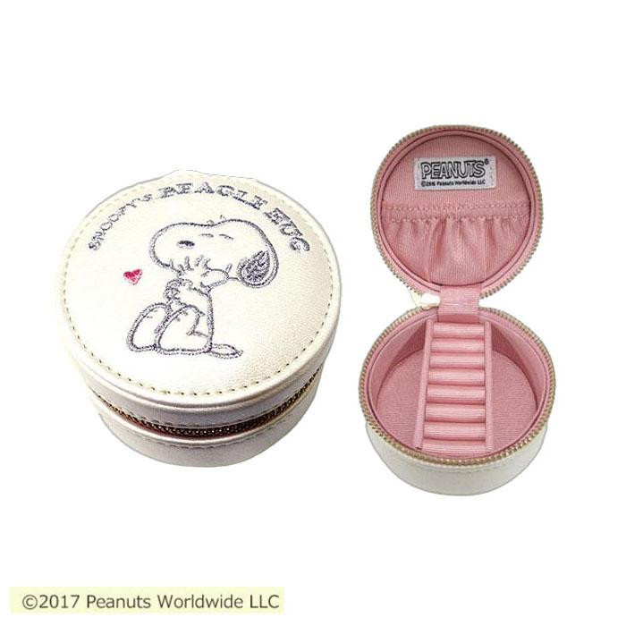 表面にはかわいいスヌーピーの刺繍入り!!バッグに入れて持ち運びできる大きさなので、どんなシーンでも使っていただける便利なジュエリーボックスです!!
