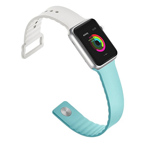 -. Feature : 2017 release new 2 tone color sports band for Apple Watch Series 1 Series 2 Sports Edition / Comes in durable and comfort silicon materials, one piece design with lug, snap in connection for easy installation of daily bands / Sweat proof wave design and single button snap for tight secure closure / Fits perfectly for Series 1 Series 2 Apple Watch, wrists for 140mm to 215mm / For more quality stylish band, please search "HandyGear Apple Watch Bands"
