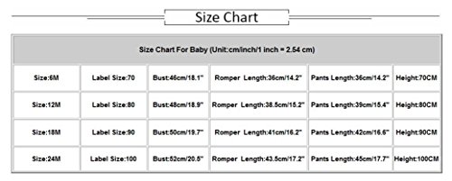 Size Details: (Unit:cm/inch/1 inch = 2.54 cm) Size:6M ? ?Label Size:70 ? Bust:46cm/18.1" ?Romper?Length:36cm/14.2" ? ? Pants Length:36cm/14.2" ?Height:70CM Size:12M ?Label Size:80 ? Bust:48cm/18.9" ?Romper?Length:38.5cm/15.2" ?Pants Length:39cm/15.4" ?Height:80CM Size:18M ?Label Size:90 ? Bust:50cm/19.7" ?Romper?Length:41cm/16.2" ? ? Pants Length:42cm/16.6" ?Height:90CM Size:24M ?Label Size:100 Bust:52cm/20.5" ?Romper?Length:43.5cm/17.2" ?Pants Length:45cm/17.7" ?Height:100CM About Commodities:? ★1. There may be a little difference of the color between the picture and the real goods because of the pixel. We hope you can understand sincerely.? ★2. Please allow slight deviation for the color and measurement. Thanks.? ★3. The goods will be delivered to you about18-25 days, if you need it in urgency you can choose DHL, the delivery time is 3-5 days. Please contact us if you have question about the delivery.? ★4.My store updates often, you are welcome to visit here at any time. ?? 0 |