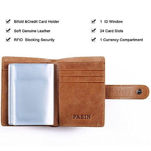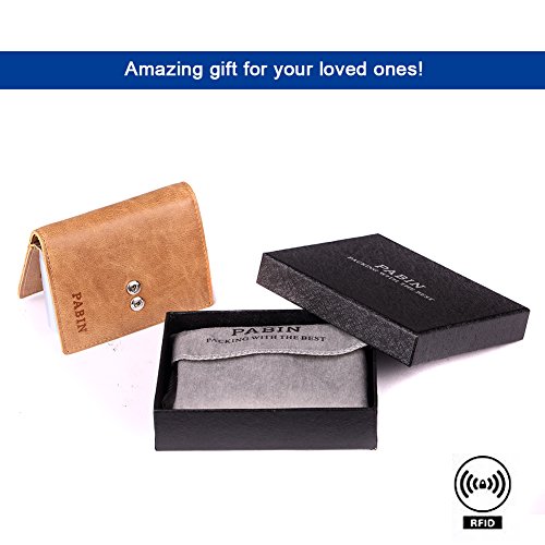 -. Binding : Apparel -. Brand : Pabin -. Department : mens -. Feature : ✔ SAFTY COMES FIRST-Tested RFID Blocking inner material will perfectly block those unwanted RFID scanners. / ✔ GENUINE LEATHER - Vintage look Premium Leather for a noticeable luxurious feel and unmatched durability. Longer time we use, nicer it becomes. / ✔ MINI BODY/ BIG CAPACITY-20+3 card slots/ 1 compartment for cash notes. / ✔ CLASSIC FUNCTIONAL DESIGN - Measure 4.5"x3.5"x0.6" Slim Small Mini body can be easily placed in front pocket/back pocket.Best choice for avoiding bulky looking wallets. / ✔ DELIVERED WITH A EXCLUSIVE GIFT BOX- Grey color wrapping cloth with a gift box makes it a perfect gift for your loved ones. -. ProductGroup : Apparel -. ProductTypeName : ACCESSORY -. Size : Medium -. Title : RFID Blocking Card Holder Wallet for Men Pabin
