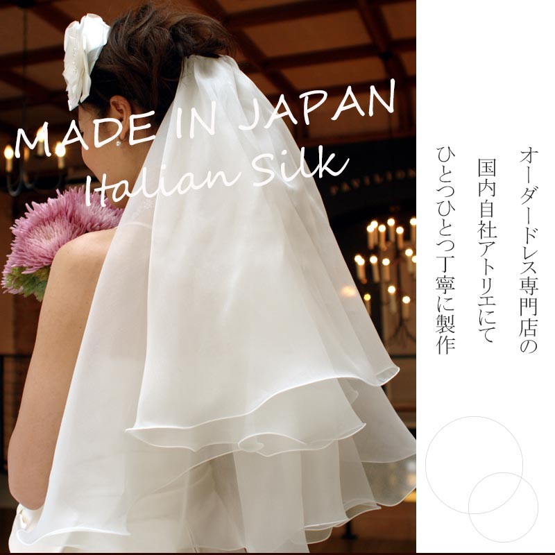 ウェディングドレスはシンプルなものから装飾の豪華なものまで、デザインを選ばずお使いいただけます。 こだわりの花嫁様にはお勧めのショートベールです。