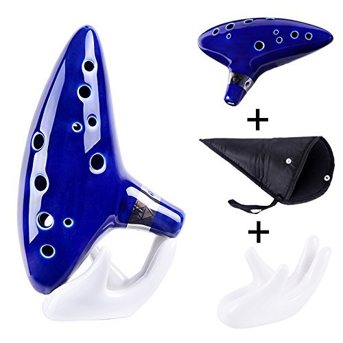 Studio : Dsoso Publisher : Dsoso Product Description This handcrafted ocarina is a high-quality, kiln-fired ceramic instrument tuned by professional musicians to provide the optimal melodic experience. An easy-to-learn piece which can be mastered in a short period of time, with the ability to spend years improving your technique, discovering new scales and harmonies. The Ocarina is the perfect instrument to practice techniques and articulations, rhythms, speed development, precision, note transitions and different musical styles. Our 12-Hole Ceramic Ocarina is finely glazed in a beautiful dark cobalt blue, detailed with a metallic silver band and gold Triforce logo. Alto C Pitch: A4-F6 including sharps and flats Features: Beautiful, accurate craftsmanship with tri-force symbol. Fully chromatic ocarina. Comes with neck-strap cord. Not a cheap plastic knock-off -- Made from kiln-fired ceramic with a beautiful and durable glaze. Measurements of 6' in length and 3.5' depth. Package Included: 1 x Ceramic 12-Hole Ocarina 1 x Neck Strap Cord (Random Color) 1 x TOTMC Mucis Book 0