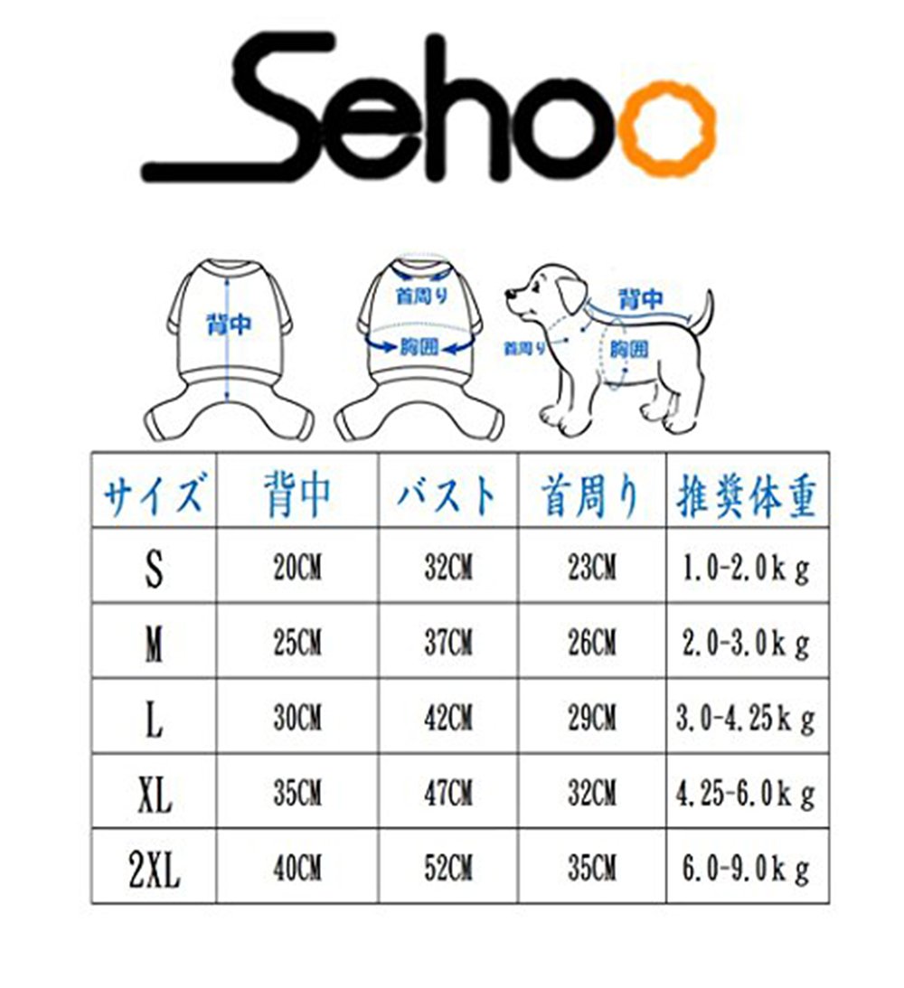 XL: back length: 35CM bust: 47CM neck circumference: 32CM recommended weight: 4.25-6kg