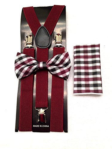 Product DescriptionBurgundy Suspenders Unisex's Plaid Bow tie Suspender0