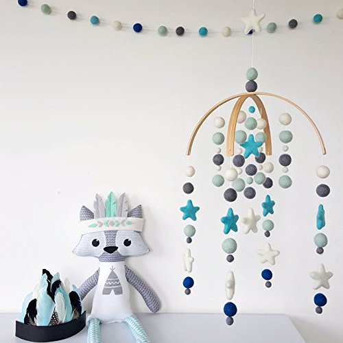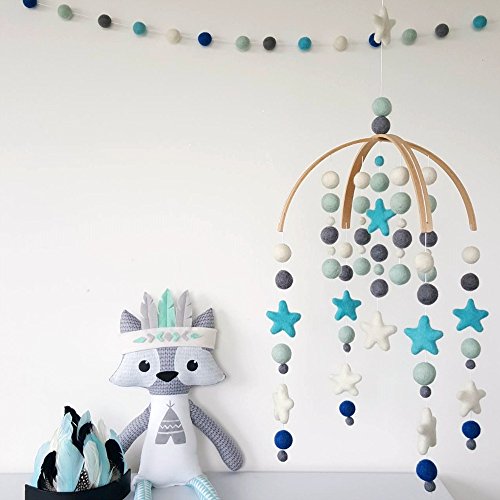 We hand make every mobile here in New Zealand and give each individual attention to make sure you get the best quality possible. With clever, delightful designs and gorgeous color combinations our mobiles will not only make the perfect addition to the nursery but will help provide needed stimulation for your child's development. Each felt ball and shape is made from 100% New Zealand wool. Made for us in Nepal each ball is individually rolled and shaped to our specifications so you're assured of a unique product and design. Because our felt balls are of high quality they will hold their position on the string unless you choose to move them and with the ability to move the felt balls and shapes you can even create your own twist on our designer looks. Each mobile measures 25cm in diameter across and has an average drop of 35-40cm from the arch, with an approx length of 1.5 metres of string for hanging so you can position it perfectly over the bassinet, bed or crib. Plus your happiness is Guaranteed! Even though this is a handmade product and you can expect some variations we want to make sure you love everything about your purchase. Our manufacturers guarantee is simple. Not satisfied? Get your money back or a replacement. No questions asked.