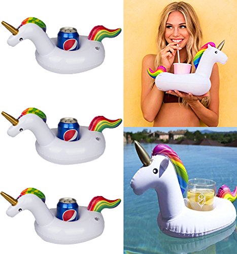 -. Title : JOKHOO 3 pc Unicorn Inflatable Cup Holder, Swimming Drink Holder Floating Coasters Toy for Pool Party, Kids Bath, Swimming, Birthday Parties and Lots More Water Activities