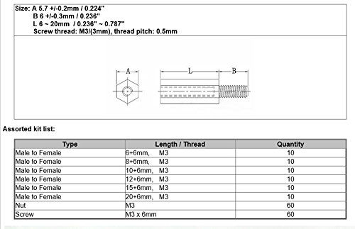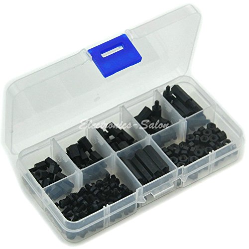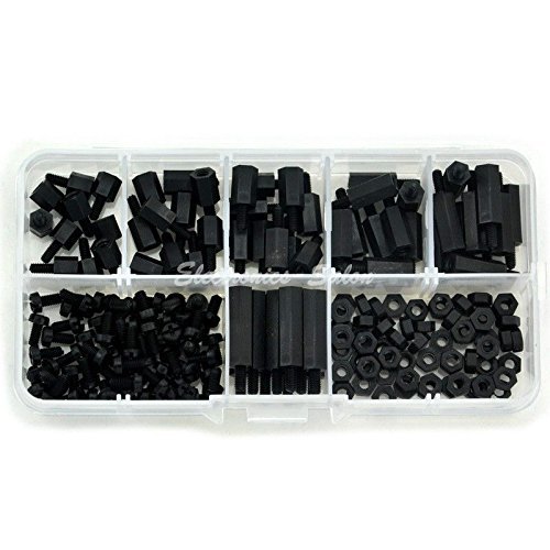 Electronics-Salon M3 Nylon Black Hex M-F Spacers/ Screws/ Nuts Assorted Kit, Standoff