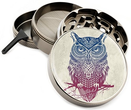 Owl Herb Grinder 4 Piece Grinders Zinc Titanium 2.5" Diamond Grind Premium Quality Owls Tree Original Art tattoo Animal - Gift Box