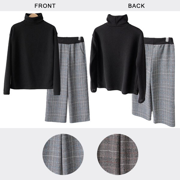 | 素材 | Tops-ポリエステル95%/スパンデックス5% Bottoms-ポリエステル95%/ウール5% (Tops-伸縮性:あり/透け感:若干あり/裏地:なし, Bottoms-伸縮性:なし/透け感:なし/裏地:なし) |