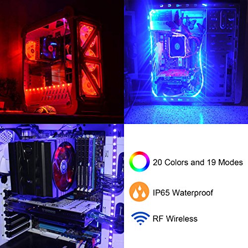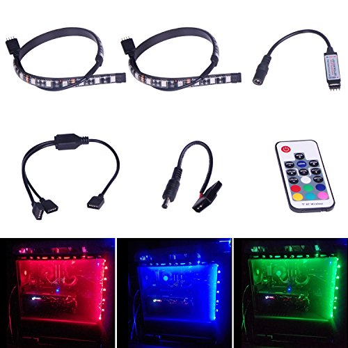Relohas RGB LED Strip Light, 5050 SMD 2pcs 18leds 30cm PC Computer Case Light, Fixed By Powerful Magnet with Multi Function RF Remote Controller Suitable For Desktop Computer Mid Tower Case