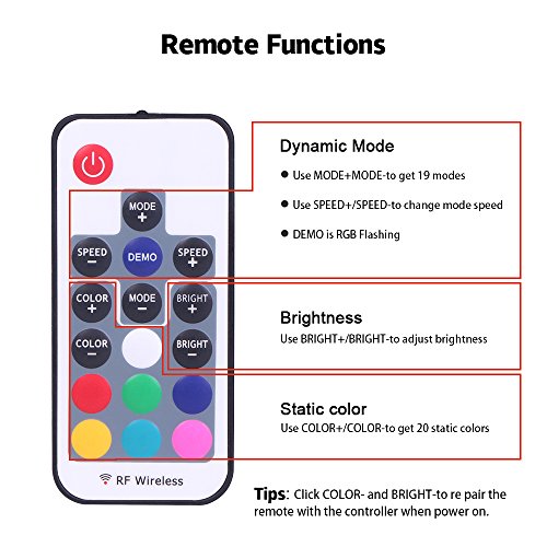 Multi Function- Controlled by a mini RF remote controller(no control angle),you can customize your desktop with 20 static colors and 19 built-in modes including flash, fade,breathing light etc