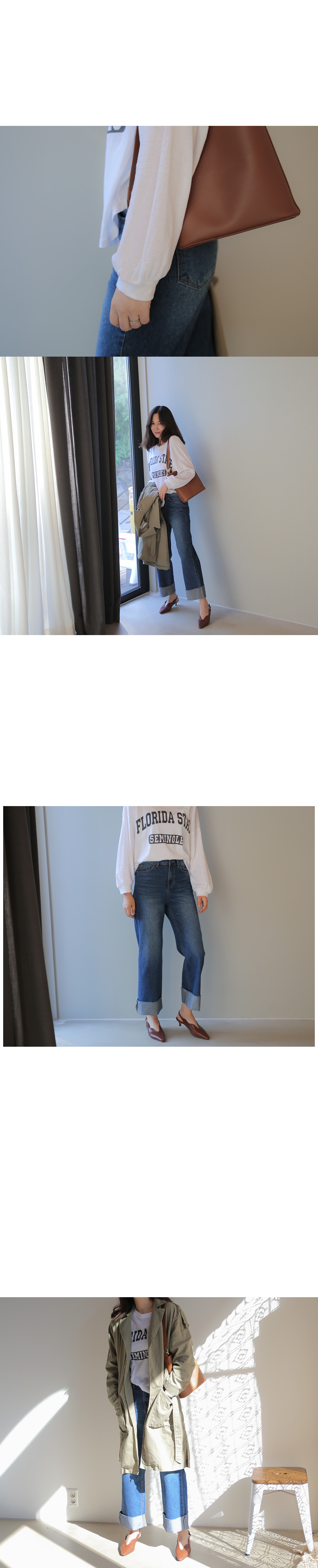 손등을 살짝 덮어줄 정도의 소매 라인과 힙라인을 살짝 덮는 길이감으로 네추럴하게 매치하기 좋아요