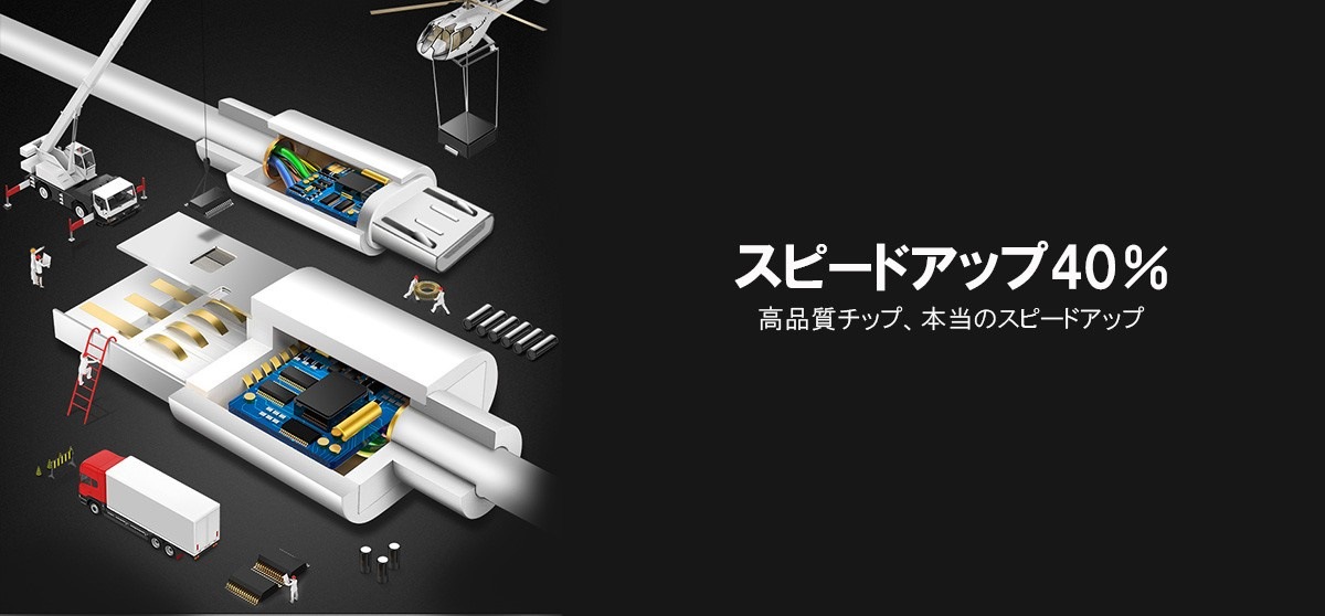 microUSBケーブル なので電圧降下を最小限に抑える設計で、スマートフォンの充電性能を十分に発揮することができます。