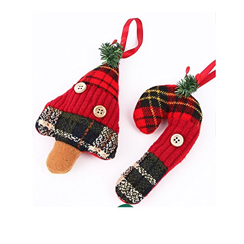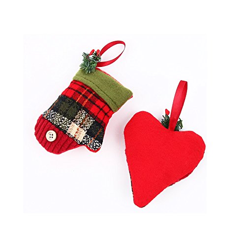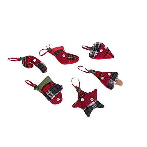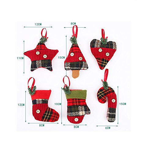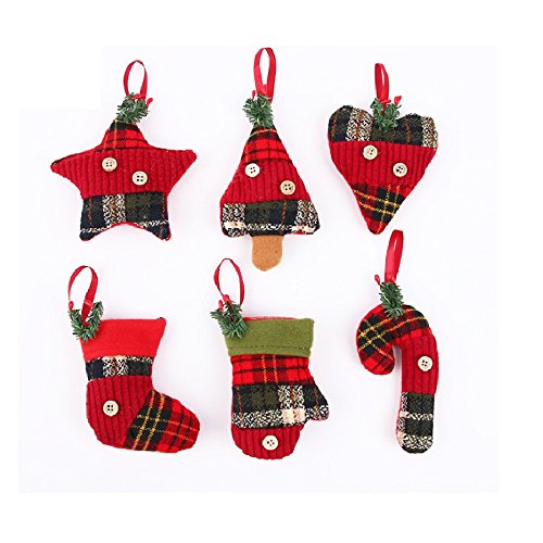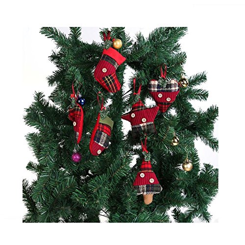 Stock Show Christmas Tree Ornaments Stocking Decorations 6Pcs Set Plaid Christmas Tree Stockings Candy Cane Star Glove Heart for Xmas Holiday Party New Year Decor, Red Plaid