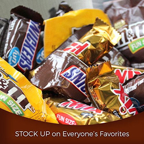There's something for everyone to enjoy with the MARS Chocolate Favorites Fun Size Candy Bars Variety Mix. This bag contains an assortment of M&M'S Milk Chocolate Candy, M&M'S Peanut Chocolate Candy, TWIX Cookie Bars and SNICKERS Candy Bars. Each bag contains 60 pieces so there is plenty to share. Stock up on a few bags to be ready for trick-or-treaters on Halloween night. Each candy bar is individually wrapped, making them easy to hand out to the little super heroes and princesses who come trick-or-treating in your neighborhood.Feature
