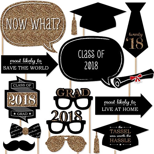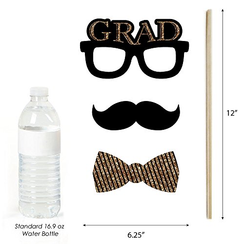 HIGH-QUALITY PARTY SUPPLIES: Graduation Party - Gold photo booth props are professionally printed on thick cardstock paper. They will arrive cut out and ready to assemble with the included wooden dowel sticks and adhesives. Graduation Party - Gold photo booth props use a No-Mess Glitter Print: Our photo booth props are designed with a printed image of glitter, eliminating glitter flake while maximizing bling effect!