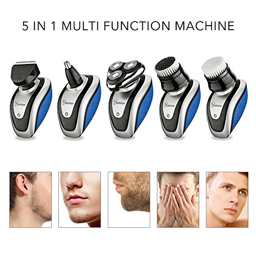 【5 in 1 Multifunction Travel Electric Razor】Includes:Shaver & Trimmer, Facial Cleaning Brush, Triple Head Rotary Shaver, Beard Trimmer and Premium Travel Pouch