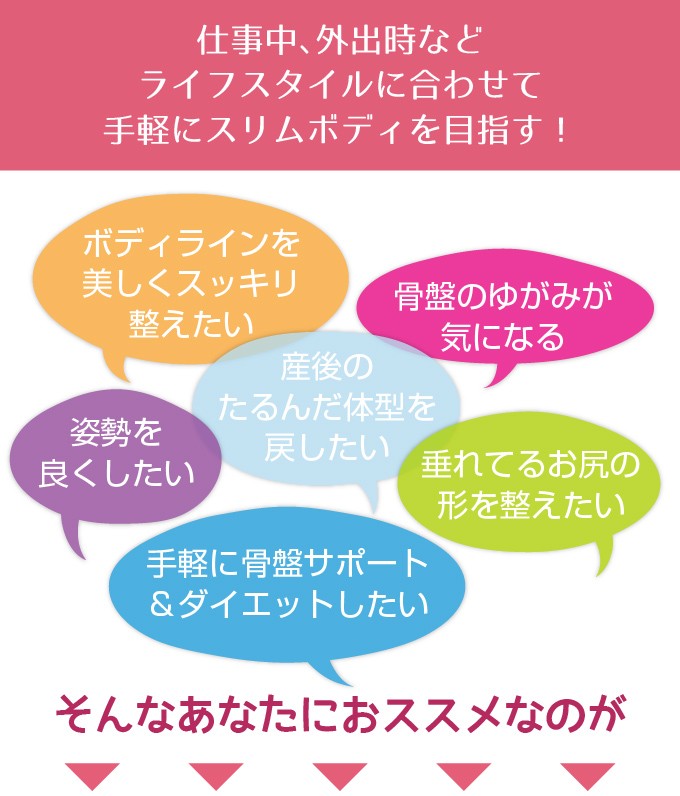 | 使用上の注意 | ●お肌に合わない場合や、かぶれ、痒み等を感じた場合はご使用をおやめください。 ●傷・かぶれ・湿疹等のある場合はご使用にならないでください。 ●生地部分に爪を立て、無理に引っ張ると破れる恐れがあります。着脱の際はご注意ください。 ●締め過ぎと感じる場合は適度な着脱を繰り返してください。 ●妊娠中の方はご使用にならないでください。 ●就寝時はご使用にならないでください。 ●乳幼児の手の届かないところに保管してください。 ●火気のそばや高温多湿、直射日光の当たる場所には保管しないでください。 ●本来の目的以外でのご使用はおやめください。 ※効果や感じ方につきましては個人差がございます。予めご了承くださいませ。 |