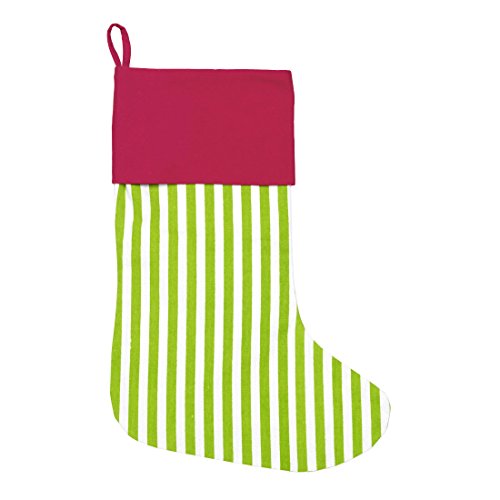 Christmas Stocking in Green Stripe with Red Trim