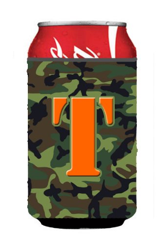 Letter T Initial Monogram - Camo Green Can or Bottle Beverage Insulator Hugger