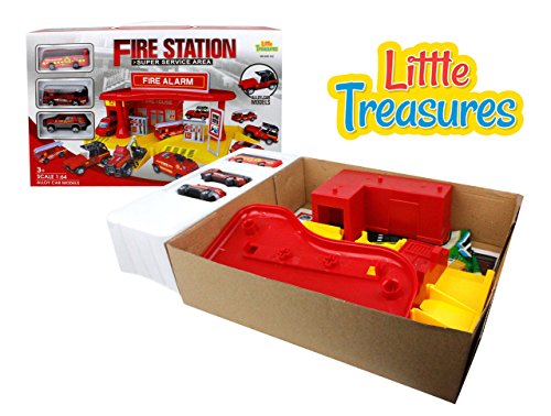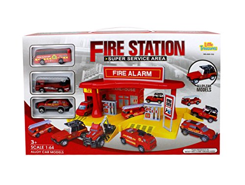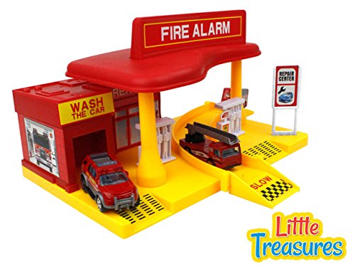 Feature : Three different vehicles are included with this toy set! Different fire trucks, a tow truck, a ladder truck, and a fire truck are all available for the children to imagine about. Who hasn't dreamed about driving a fire truck! The set even includes the tow truck that can pull the other vehicles. / Designed with a very high quality construction, the alloy fire response vehicles will be safe and durable for the children in your life to enjoy! / The station includes a warehouse, a car wash, repair center with a ramp, and a fueling station - all sorts of ways to take care of the vehicles and make sure the fire trucks and response vehicles are ready to respond when you're needed! / This toy is rated for children aged three years and older. / A one hundred percent money back guarantee supports this educational child's toy as a real investment for your child's growth and learning!