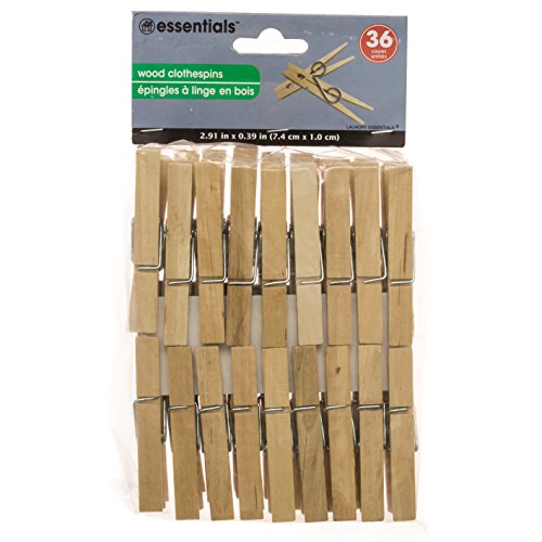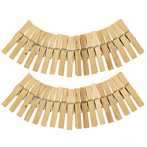 Standart Natural Wooden Clothespins, 2.9 inch Wood Clothespins with Coil Spring, Pack of 36. (36)