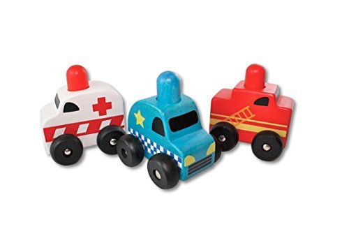 These 3 wooden emergency squeaker cars will squeak when their tops are pushed. We've included an ambulance, fire truck and police car.