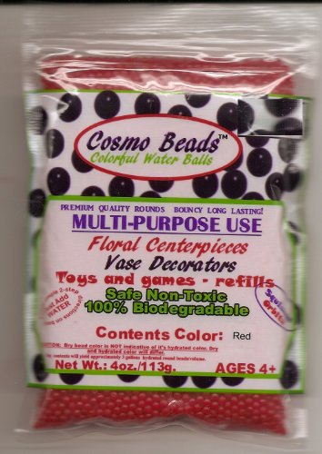 Water Pearls Gel Beads- Wedding & Event Centerpieces For Floral Arrangements - Cosmo Beads (Tm)-makes 3 Gallons (4 Oz. Pack) (Red)