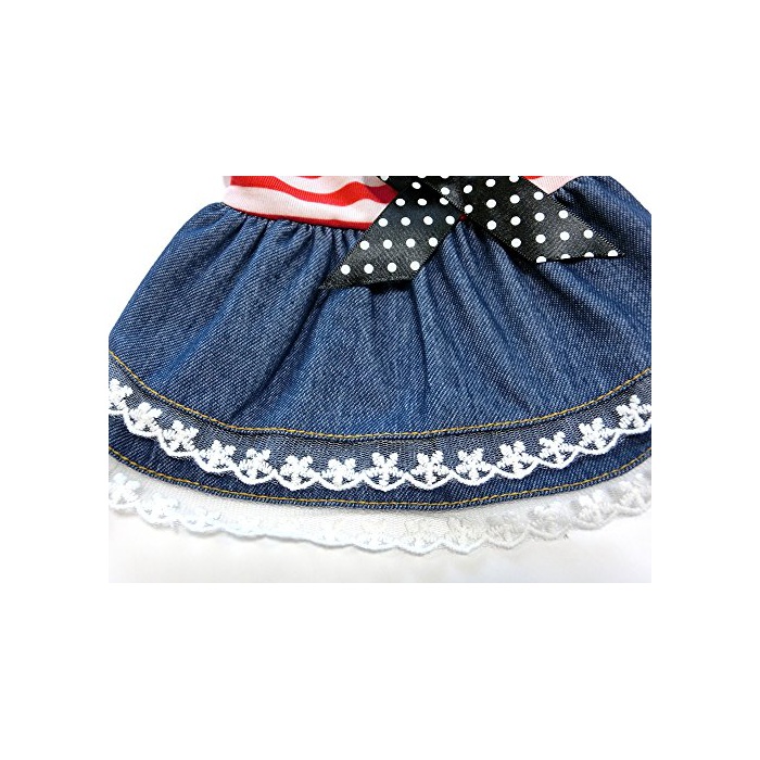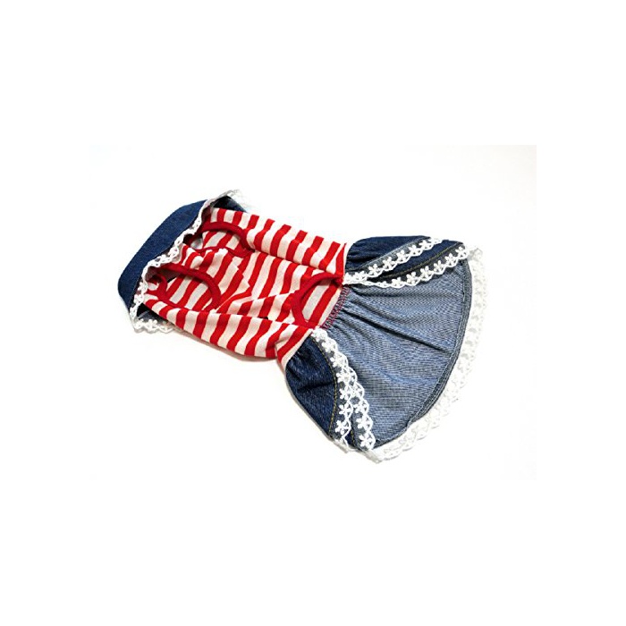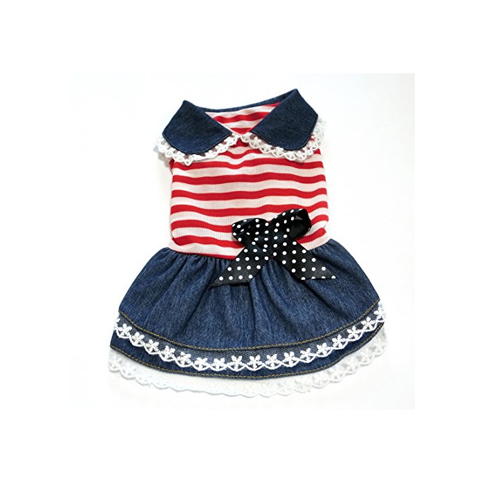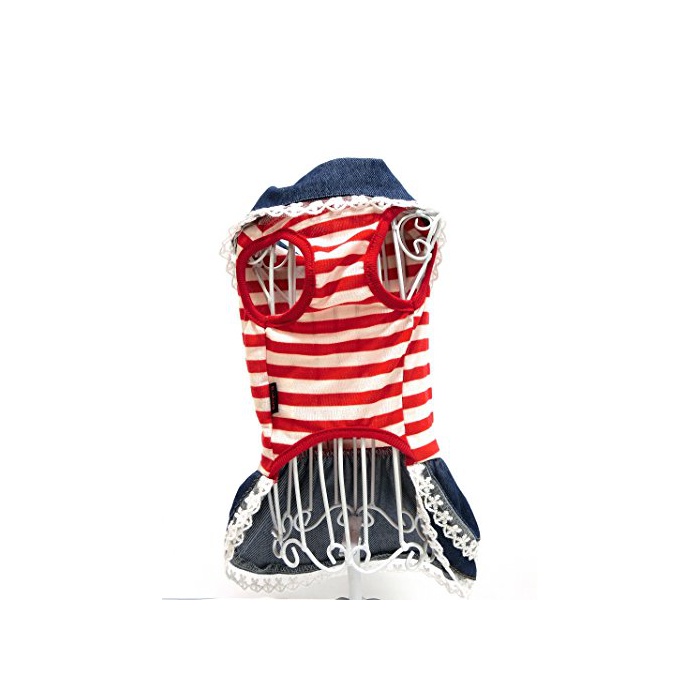 원본상품명:(wonder)犬の服 ボ?ダ? カジュアル ワンピ?ス 可愛い リボン レ?ス付 ドッグウェア (S)