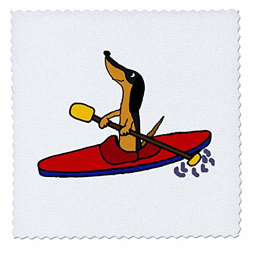 3dRose Funny Cute Dachshund Dog Red Kayak Quilt Square, 14 x 14"