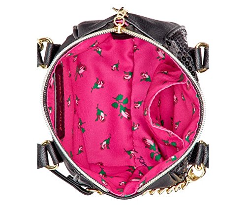 Girly, glamorous and destined to get attention. Go all out with this sequin bow crossbody from Betsey Johnson. Faux leather and sequins Crossbody with 24" drop Top zip closure Exterior features gold-tone hardware Interior features 1 zip pocket 8" W x 6" H x 3" D Silhouette is based off 5'9" model ImportedFeature