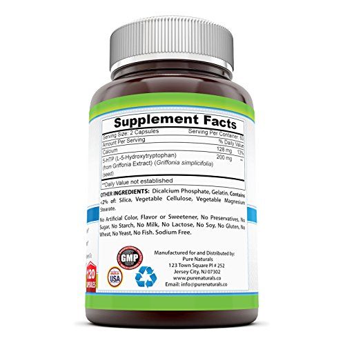 -. Binding : Health and Beauty -. Brand : Pure Naturals -. EAN : 0819070012635 -. Feature : All natural 5 htp supplement pure naturals5 htp supplement is made from natural 5 hydroxytryptophan derived from griffonia simplicifolia seeds, not from chemicals / Optimal dose just two of our 5 htp 100 mg capsules provide the most frequently recommended amount of hydroxytryptophan to support healthy sleep cycles and promote relaxation / Contains natural calcium your body needs calcium to convert 5 htp into serotonin to support sleep! That's why there is 128mg of calcium included in each serving of our 5 htp capsules -. IsAdultProduct : 0 -. Label : Health Concepts LLC -. Manufacturer : Health Concepts LLC -. Model : 819070012635 -. MPN : M1IPQ1Q -. NumberOfItems : 1 -. PackageQuantity : 1 -. PartNumber : M1IPQ1Q -. ProductGroup : Health and Beauty -. ProductTypeName : HEALTH_PERSONAL_CARE -. PublicationDate : 2016-11-12 -. Publisher : Health Concepts LLC -. ReleaseDate : 2016-11-12 -. Studio : Health Concepts LLC -. Title : Pure Naturals 5-HTP 100 mg V Capsules, 120 Count -. UPC : 819070012635