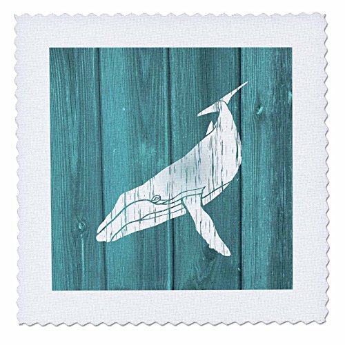 3dRose Humpback Whale Stencil in Faded White Paint Over Teal- Not Real Wood - Quilt Square, 25 by 25-Inch (qs_220427_10)