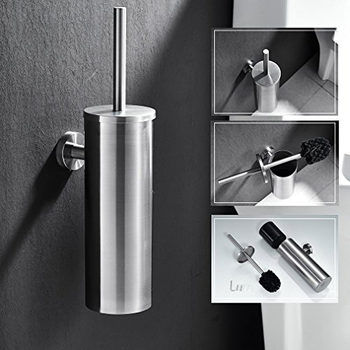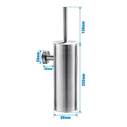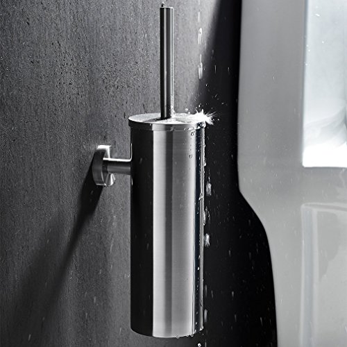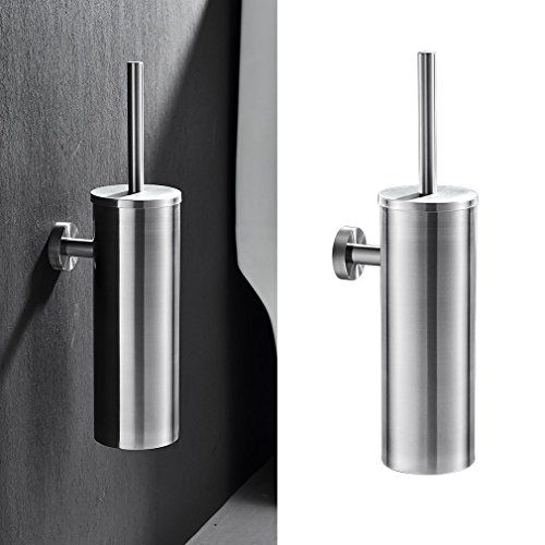 Rovate Wall Mount SUS304 Stainless Steel Toilet Holder Brush with Lid, Brushed Nickel