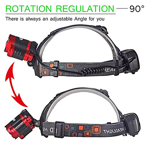 90°FLEXIBLE ADJUSTMENT: the headlamp can be 90 ° downward adjustment, increase the maximum head lamp irradiation range, lighting more better. for someone who likes hiking fishing camping running, it is convenient.