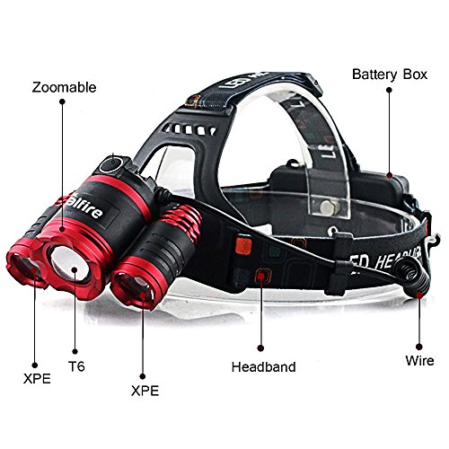 SPECIAL DESIGN: it is made of aluminum and is oxidized by black light. The LED Headlamp is provided with main light, auxiliary light, full light, flash light, four flash modes. 2 x XPE and 1 x T6. Two independent setting buttons, zoomable adjustment and opening.