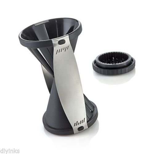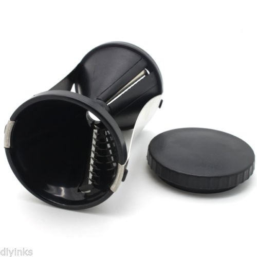 - Feature : Vegetable Spiral Slicer - Julienne Veggetti Spirelli Veggie Pasta Cutter / Includes:1 x Spiral Slicer / Features:Create endless Julienne strips The constructed from high-quality plastic and stainless steel Dishwasher-safe Stainless steel & plastic Also great for garnishes, plating and decorating serving dishes / This spiral slicer creates mounds of endless julienne strips of carrots, radishes, cucumbers and all kinds of firm vegetables. This handy gadget is constructed from high-quality plastic and stainless steel blades which slice with ease. The slicer features two different-sized spirals which able to create 2mm x 3mm thin strips for salads and 3.5mm x 5mm wide strips for pasta dishes. It can be cleaned very easily and is dishwasher-safe.