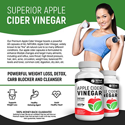 High Quality - Extra Strength Apple Cider Vinegar pills (ACV) - Apple Cider Vinegar is used across the world for a variety of of ailments. Many begin their day by waking up and consuming Apple Cider Vinegar anyway they can. For some the taste of Apple Cider Vinegar is too strong and pungent or just plain inconvenient. Capsules provide an easy and effective way to reap all the benefits apple cider vinegar without the hassles the liquid form has. Many consider Apple Cider Vinegar to be a natural cure-all and use it for blood pressure, acne, acid re-flux, balancing PH levels, detoxification, weight-loss, brain-fog, circulation, heart health, and so on. We wanted to bring you guys a high quality all-natural product packed with the best Apple Cider Vinegar we could find. We test all our batches by a third party lab so you can be confident with what you are taking. Uses for Apple Cider Vinegar: ? Powerful Detoxifier ? Effective Cleanser ? May be useful for Weight Loss ? Balances PH which has helped some with Acne ? Metabolism Booster ? Improves Circulation ? Kick starts your Immune System ? Combats brain-fog 0 |