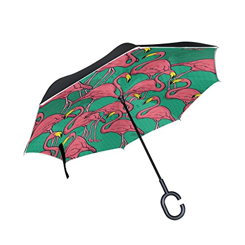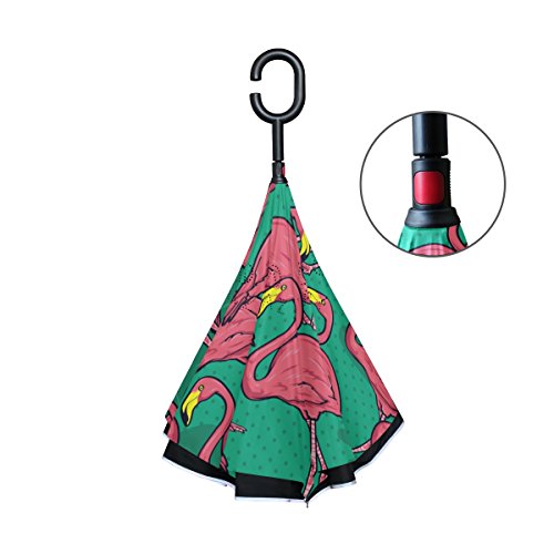 -. Title : My Daily Double Layer Inverted Umbrella Cars Reverse Umbrella Vintage Flamingo Windproof UV Proof Travel Outdoor Umbrella