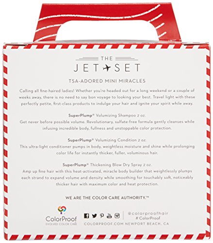 ReleaseDate : 2017-07-04 Studio : ColorProof Evolved Color Care Publisher : ColorProof Evolved Color Care Binding : Health and Beauty Product Description Calling all fine-haired ladies! Whether you’re headed out for a long weekend or a couple of weeks away, there is no need to say bon voyage to looking your best. Travel light with these perfectly petite, first-class products to indulge your hair and ignite your spirit while away. SuperPlump Volumizing Shampoo 2 oz. Get never before possible volume. Revolutionary, sulfate-free formula gently cleanses while infusing incredible body, fullness and unstoppable color protection. SuperPlump Volumizing Condition 2 oz. This ultra-light conditioner pumps in body, weightless moisture and shine while prolonging color life for instantly thicker, fuller, voluminous hair. SuperPlump Thickening Blow Dry Spray 2 oz. Give hair an instant, volumizing root boost. Never stiff or sticky, this weightless, airy mousse delivers long-lasting body and lift where you need it most for bouncy, beautiful style with maximum color and heat protection. 0