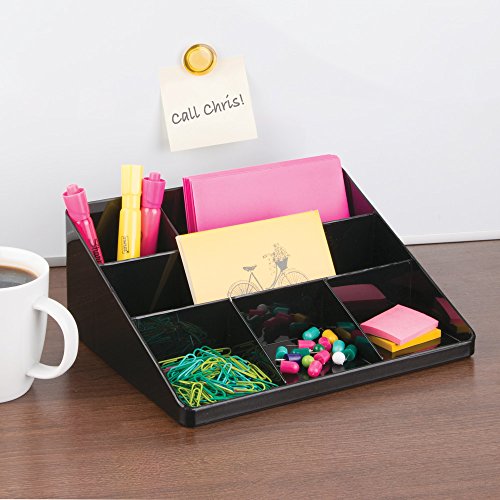 InterDesign Office Supplies Desk Organizer, for Mail, Pens, Markers, Highlighters, Tape - Black