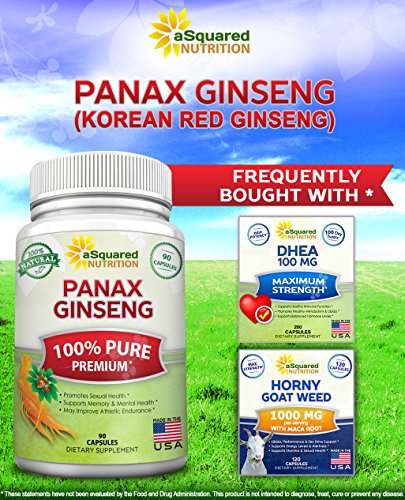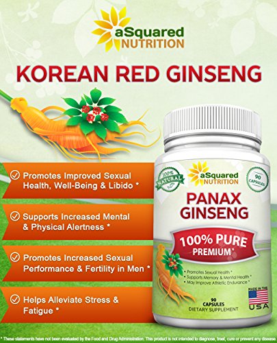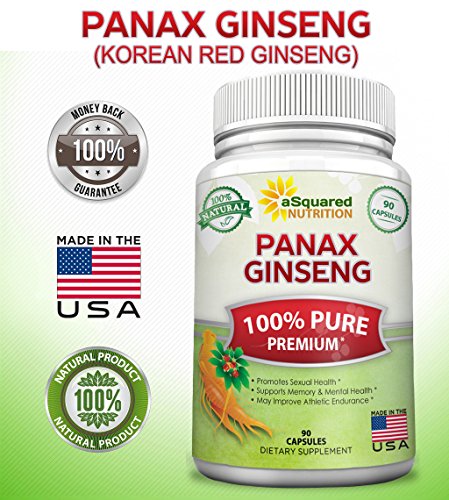-. Feature : PREMIUM KOREAN RED GINSENG EXTRACT - Panax Ginseng is a plant native to the wooded areas of Nepal, Korea, and China - and its origins can be traced to China over 5000 years ago. Our 100% pure extract is sourced from premium growers across Asia, and contains no addictive or preservatives. No American Ginseng (Wisconsin), Siberian Ginseng, Panax pseudoginseng, other types of ginsengs in the complex. / BEST VALUE ON AMAZON - MAX STRENGTH 1000 MG PER DAILY DOSAGE - 90 CAPSULES - Our product delivers 1000 mg of pure Panax Ginseng root extract per daily intake, and contains a high potency of ginsenosides. Many other suppliers are only offering a less dosage (500mg) and fewer capsules per bottle for the same price. All backed by our "best in the industry" 100% MONEY BACK GUARANTEE. / MAY IMPROVE STAMINA, MENTAL & PHYSICAL PERFORMANCE - Panax ginseng is often referred to as a general well-being medication, because it positively affects may different systems of the body. Panax ginseng is used for improving thinking, concentration, memory and work efficiency, physical stamina, and athletic endurance. The substances in Panax ginseng that are thought to be the most important are called ginsenosides or panaxosides. / NATURAL FORMULATION: No fillers, binders, or potentially harmful preservatives or GMOs means no unwanted side effects for you! We go the extra mile to ensure our supplements have passed extensive quality control testing before being bottled and sold. Made in an FDA inspected and GMP certified manufacturing facility right here in the USA. / OVERALL HEALTH & WELLNESS - Panax ginseng is an ancient herbal supplement, and some people use Panax ginseng to help them cope with stress and as a general tonic for improving well-being. They sometimes call Panax ginseng an "adaptogen" when it's used in this way. Panax ginseng is also used for depression, anxiety, chronic fatigue syndrome (CFS), for boosting the immune system, and for fighting particular infections in a lung diseasecalled cystic fibrosis