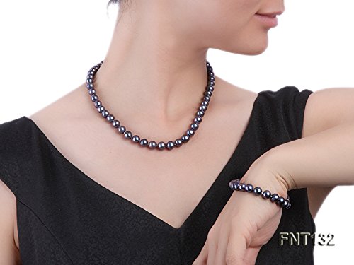 Pretty necklace and bracelet set made of 6-7mm black cultured freshwater pearls.
