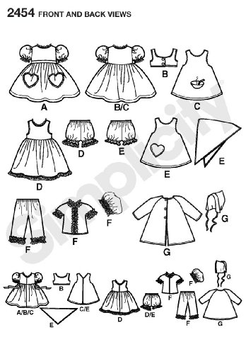 -. Feature : Doll clothes in size a (all sizes), simplicity pattern 2454 / Number of looks included:7 / Designed and manufactured in theusa