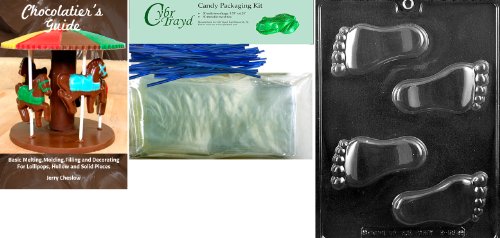 Cybrtrayd 'Baby Feet' Baby Chocolate Candy Mold with Chocolatier's Bundle, Includes 50 Cello Bags, 50 Blue Twist Ties and Chocolatier's Guide