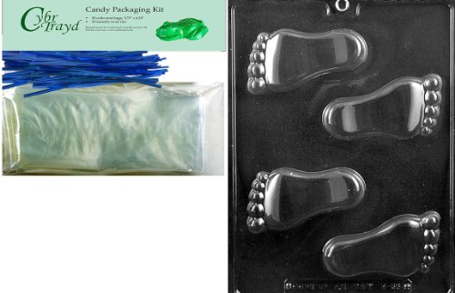 Cybrtrayd 'Baby Feet' Baby Chocolate Candy Mold with Chocolatier's Bundle, Includes 50 Cello Bags, 50 Pink Twist Ties and Chocolatier's Guide