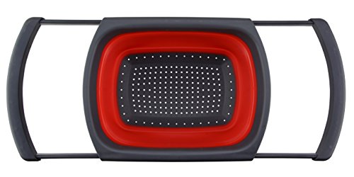 ~ MESS FREE STRAINING: Extendable handles that can extend up to 24’’ so it can perfectly fit any sink. When not extended, the drainer is 10.5’’x15’’ and can even stand on its own for maximum security and convenience.