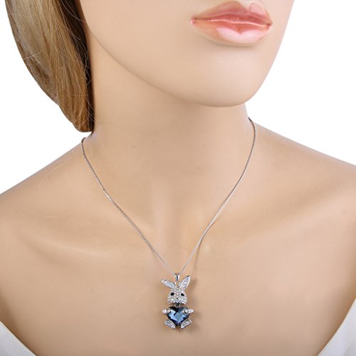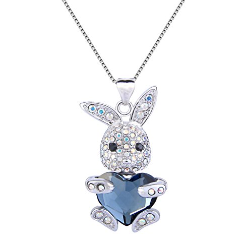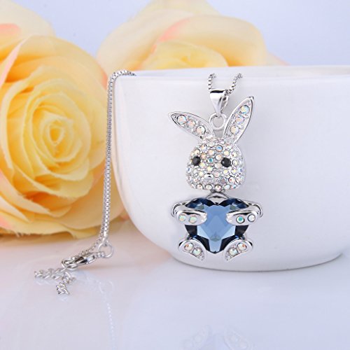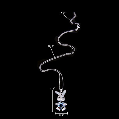 Main Color: Denim Blue, Clear AB; Chain Length: 20.5in-22.8in, Pendant Size: 0.7in by 1.2in, Total Weight: 14g