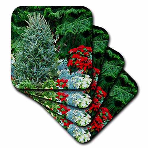 3dRose cst_8432_2 Christmas Tree-Poinsettia-Soft Coasters, Set of 8